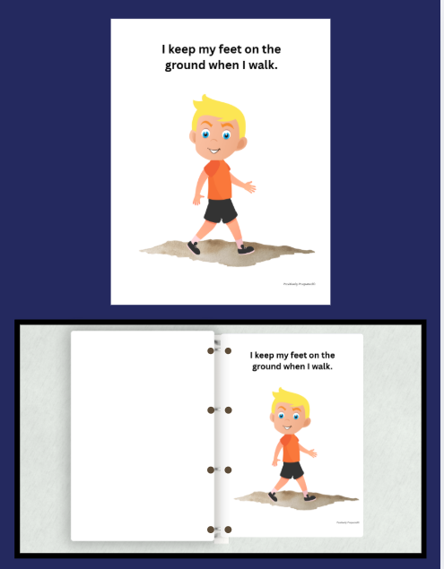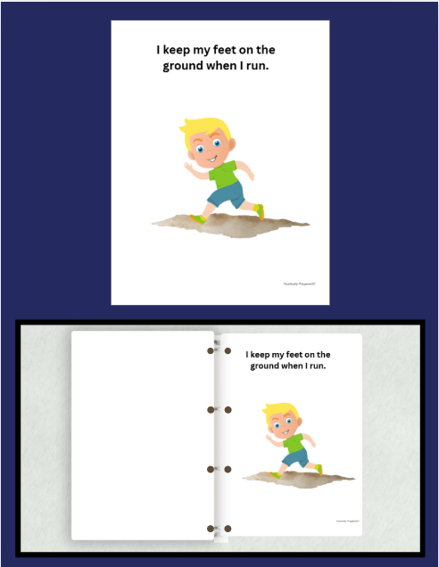 My Feet Stay on the Ground social narrative that explains why it is important to keep our feet on the ground and safe alternatives for movement and play. Written for both school and home environments.
