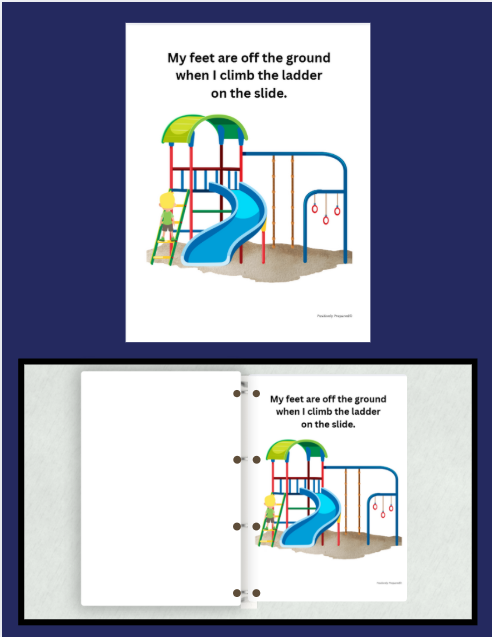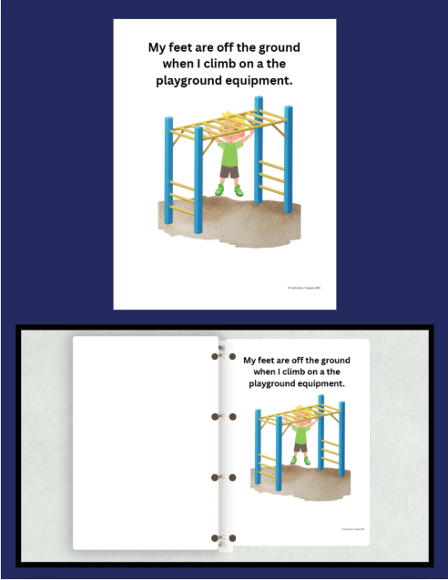 Like a social story this social narrative uses simple language and visuals to explain when we keep our feet on the ground and safe alternatives for movement and play. Focusing on the desired behavior “keeping my feet on the ground” leads to better results versus using negative language “don”t climb on that”. The story has pages that can be removed to customize the story for the home or school environment. There is a bonus celebratory social narrative I Did a Good Job Keeping My Feet on the Ground that can be read to celebrate and reinforce the positive behavior. Included is a handout containing information on why kids climb and more suggestions on how to stop the behavior.