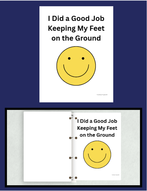 I Did a Good Job Keeping My Feet on the Ground celebratory social narrative that can be read to reinforce the positive behavior. Written for both school and home environements.