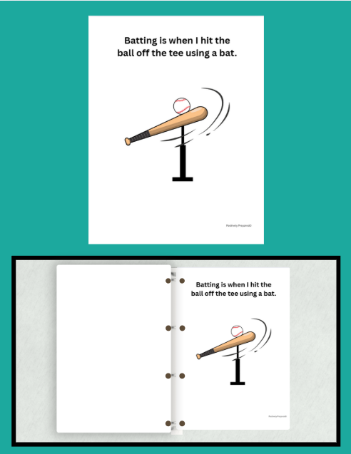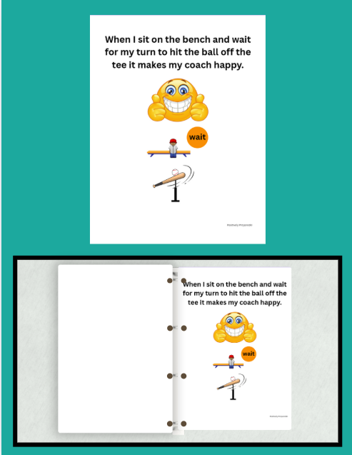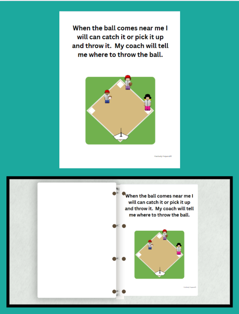 • A social narrative Playing Tee-Ball that explains how to play the game when at bat and when in the outfield.