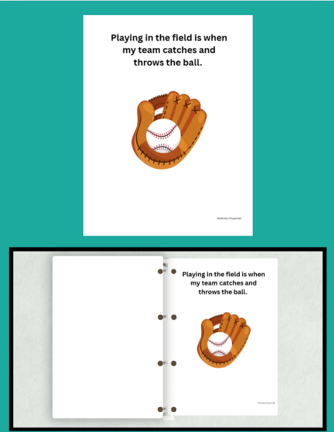 • Visuals- picture sequence cards explaining the steps of when your team is in the outfield.