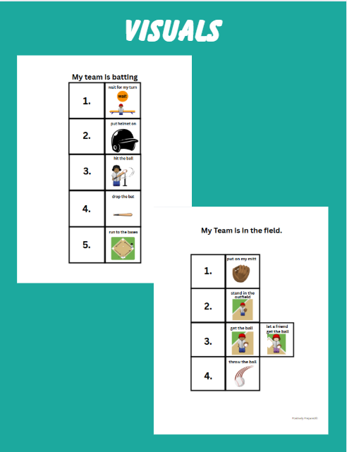 • Visuals – picture sequence cards explaining the steps of when your team is batting.
